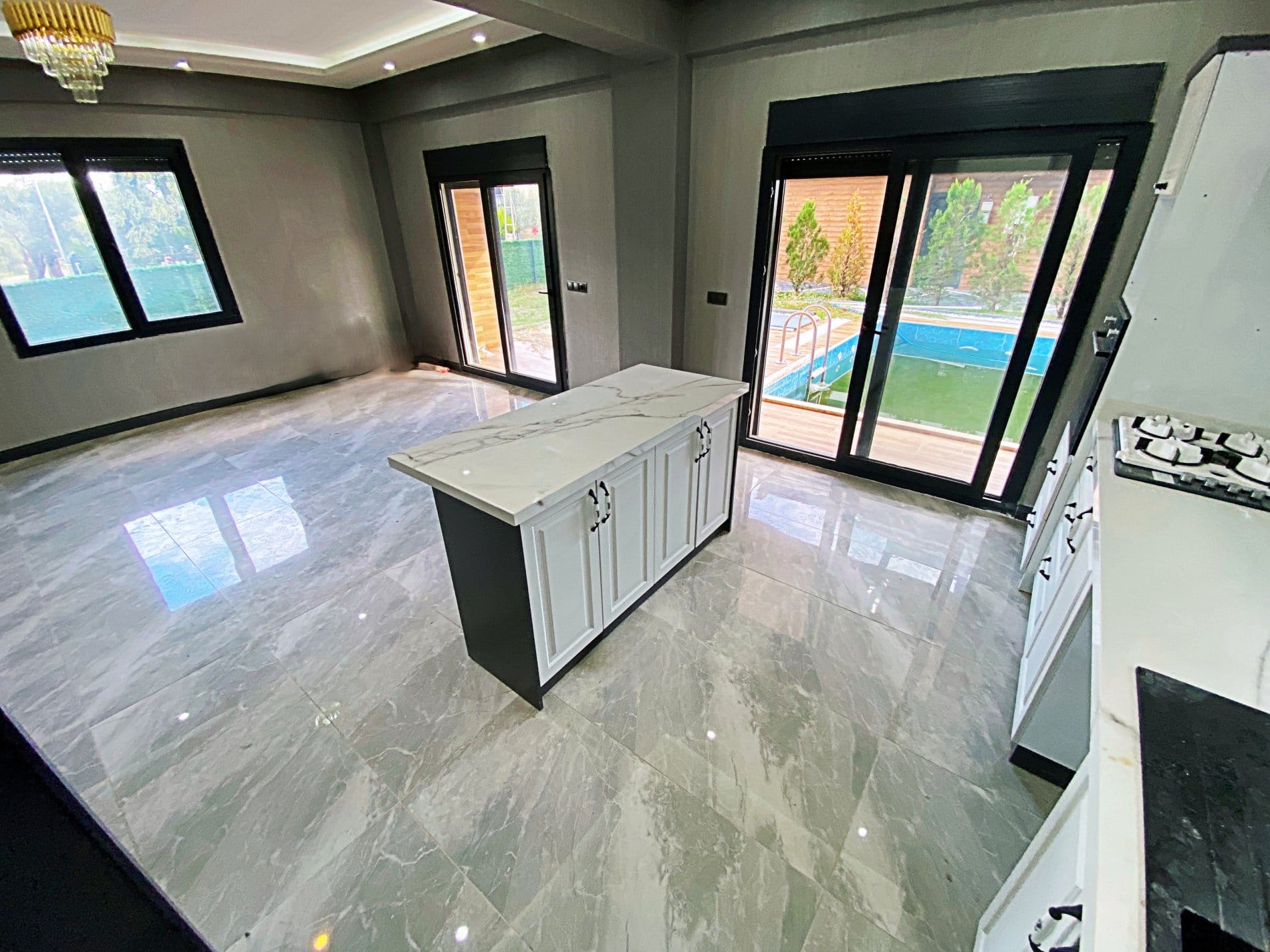 • Şık ve fonksiyonel açık mutfak tasarımı
