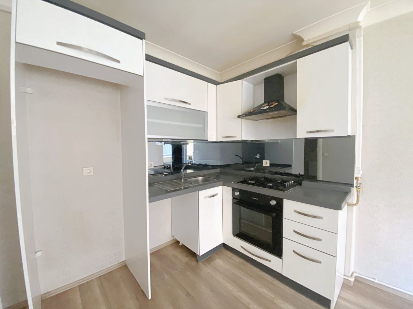 - Ankastre Set: 3’lü ankastre set (ocak, fırın, davlumbaz) ile modern ve kullanışlı mutfak alanı